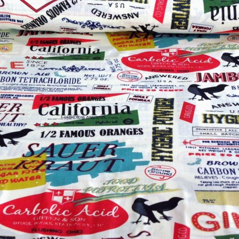 1 kép Canvas GINGER, címkék mintás pamutvászon méteráru
