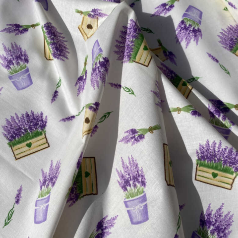 1 kép Canvas LAVENDO, levendulás, házikós mintás pamutvászon