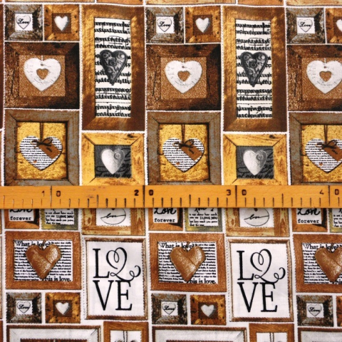1 kép Canvas LOVE. drapp, patchwork mintás pamut vászon