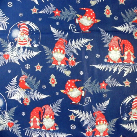 1 kép Canvas Manócskák, extra széles, karácsonyi mintás pamutvászon - kék