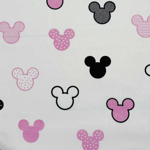 100% pamutvászon textil méteráru. 160 cm széles. Legkisebb rendelési mennyiség 1 m. 160 cm extra széles, pamutvászon textil méteráru. Összetétel: 100% pamut. Finom, puha, ágyneműhuzatnak való pamutvászon anyag. Fehér, rózsaszín és fakete Mickey feje