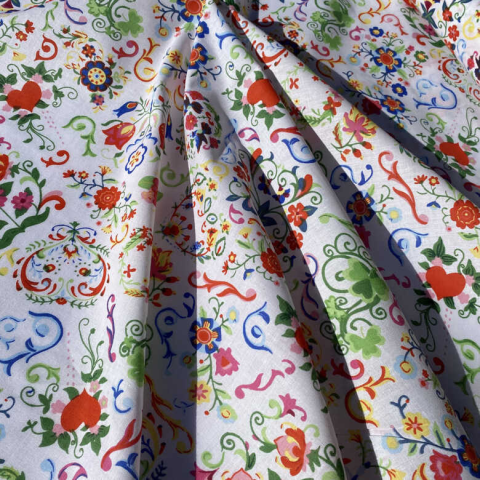 1 kép Canvas Népies jellegű, illusztrált mintás, fehér pamutvászon