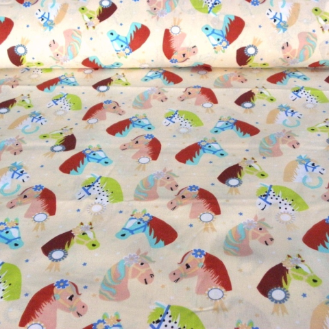 1 kép Canvas RÁRÓ, extra széles, lovacskás, gyerekmintás pamutvászon, bézs
