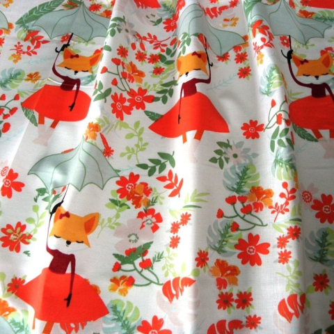 1 kép Canvas RÓKALÁNY, napernyős rókalányok, virágok mintás pamutvászon
