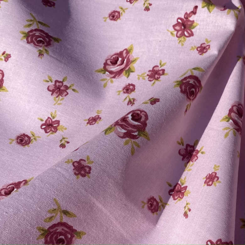 100% pamut vászon textil méteráru. Legkisebb rendelési mennyiség 1 méter. 140 cm széles, pamut vászon anyag méteráru. Rózsaminta, kis bordó rózsák rózsaszín alapon. Összetétel: 100% pamut. Felhasználás: ágynemű, dekorfüggöny, néptáncos ruha, foltvarrá