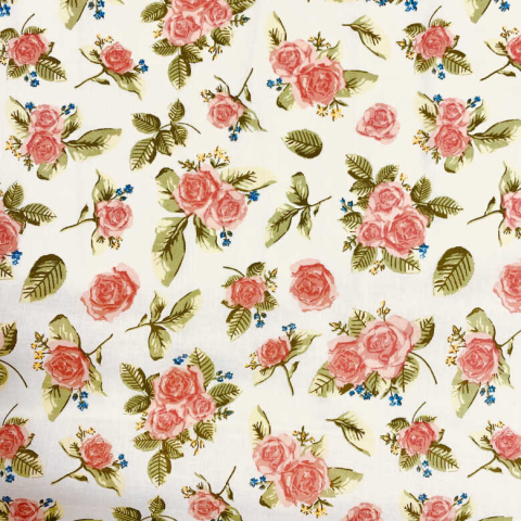 1 kép Canvas ROSALIE, lazac színű rózsa mintás pamutvászon ekrü alapon