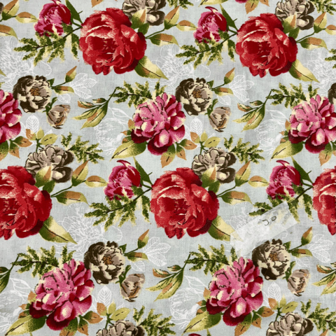 100% pamutvászon méteráru. 140 cm széles. Legkisebb rendelési mennyiség 1 méter. 140 cm széles, pamutvászon anyag. Összetétel: 100% pamut. Festett, illetve rajzolt rózsák, virágok szürkészöld alapon. Felhasználás: szoba, ágynemű, dekorfüggöny, falvéd