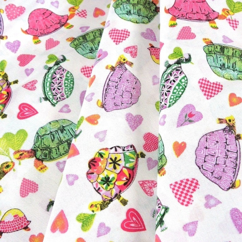 1 kép Canvas TEKNŐCE, színes teknősbékás, szívecskés pamutvászon méteráru