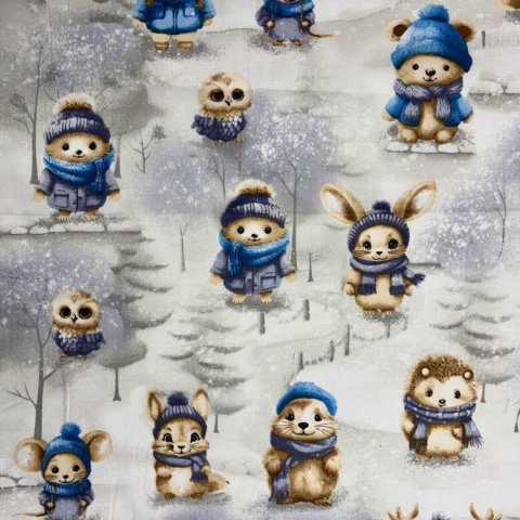 1 kép Canvas Téli erdei állatkák mintás extra széles pamutvászon