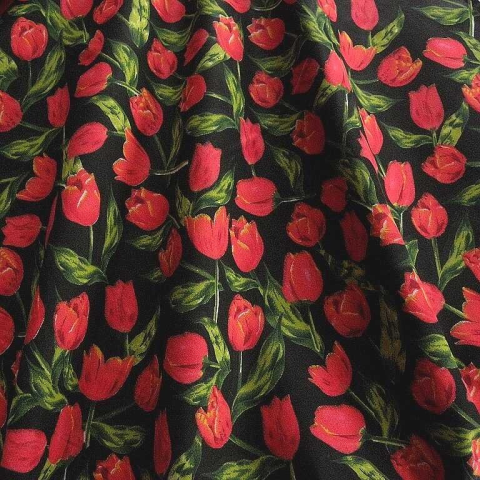 1 kép Canvas TULIPÁNOK mintás pamutvászon - fekete