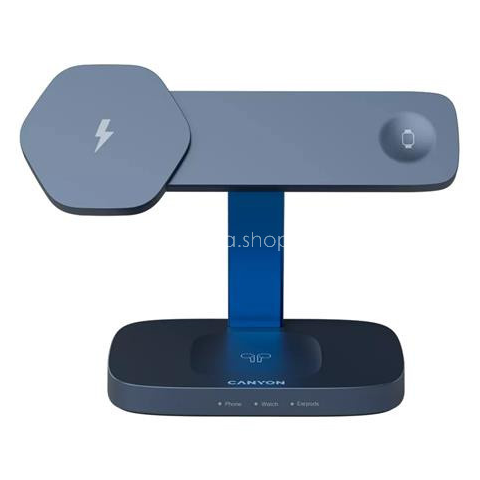 Töltőállomás, 3-az-1-ben, CANYON Hexagon 310, szürke-kék A Hexagon WCS310 3 az 1-ben funkciójával egyszerre képes feltölteni a telefonodat, az okosórádat és a fülhallgatódat anélkül, hogy zsúfoltságot vagy összegubancolódott kábeleket okozna. Még soha