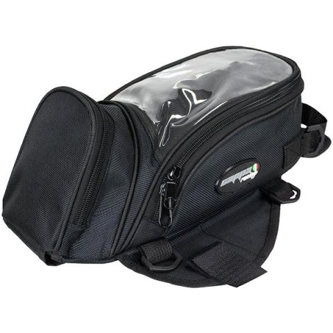 Tank táska - anyaga: poliészter, térfogat: 3 l, mérete: 12 x 32 x 20 cm, A nagyon hasznos Cappa Racing Aida Tanktáska klassz megoldást kínál a motorkerékpár rakodóhelyének megnövelésére. 3 l-es űrtartalmának köszönhetően belerakhatod a legfontosabb dolgaidat, mint például