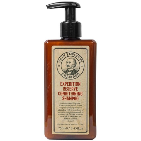 Sampon férfiak számára - hagyományos sampon, minden hajtípusra ajánlott, hidratáló, mélytisztító és erősítő hatás, szulfátmentes és vitaminos, 250 ml-es kiszerelésben A gyengéd és kíméletes CAPTAIN FAWCETT Expeditio Reserve sampon sérült hajra ideális. A Pézsma, a pacsuli és a cédrus finom illatával kápráztat el. Alaposan tisztítja a hajat, ráadásul kifinomult form