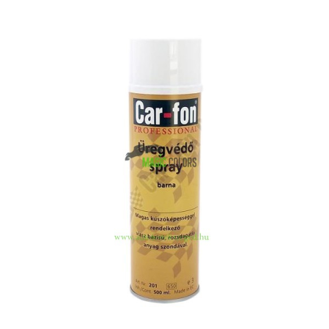 CAR-FON üregvédő spray + szonda, 500 ml, kiváló kúszó- és tapadóképességgel, tartós rozsda- és nedvességvédelemre. Car-Fon Üregvédő Spray + Szonda (500 ml) A CAR-FON barna üregvédő spray egy kiváló minőségű, viasz, adalékok és hígító alapú termék. Maga