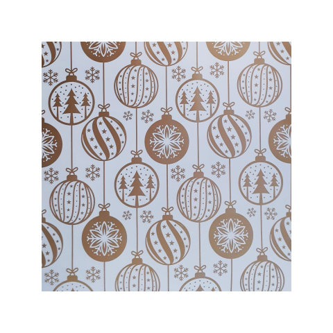 Az Aranyszínű karácsonyi díszek mintás csomagolópapír elegáns és ünnepi választás, amely exkluzív megjelenést kölcsönöz ajándékaidnak. A fehér alapon arany színben pompázó karácsonyfadíszek, hópelyhek és fenyőfák mintázata kifinomult és modern stílust tükröz, így bármilyen ajándékot különlegessé varázsol.
