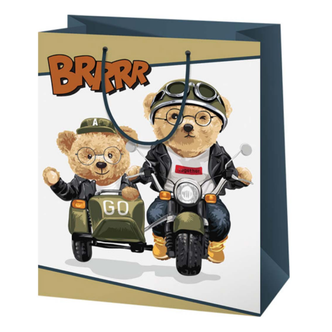 Brrrr mackók motorkerékpáron mintás közepes ajándéktáska 18x10x23