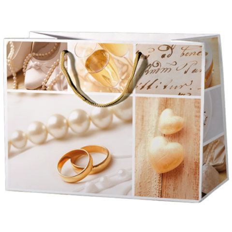 Esküvői, karikagyűrű mintás nagy méretű ajándéktáska 27x14x33cm