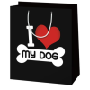 A kutyusok szerelmeseinek tökéletes választás lehet ez a csodaszép ajándéktáska, mely egy igazán különleges felirattal van ellátva. A díszzacskón az „I love my dog”, vagyis imádom a kutyámat szöveg olvasható egy nagy piros szívvel. A táska zsinór füllel és erősített talppal készül, hogy az extra nagy méretű ajándékok mellé még a nehéz dolgok is biztonságo