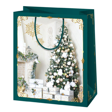 Ez a nagy méretű ajándéktáska tökéletes választás az ünnepi időszakra. A táska középpontjában egy gyönyörűen díszített karácsonyfa áll, mely alatt számos ajándék található, így már a táska látványa is mosolyt csal az emberek arcára. Az ajándéktáska mérete, 27 x 14 x 33 cm, kiválóan alkalmas nagyobb ajándékok, vagy akár több kise