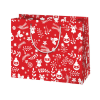 A karácsonyi ajándékok átadása sokkal meghittebb és sokkal nagyobb meglepetéssel jár, ha gondoskodunk egy megfelelő csomagolásról vagy ajándék tasakról, és ez a piros alapszínű, de fehér karácsonyi mintákkal díszített tasak remek választás lehet. A közepes méretű, fekvő kialakítású ajándéktáska kiváló minőségű, telített színekkel k
