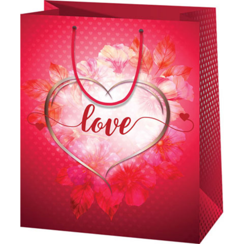 Ez a közepes méretű ajándéktáska remek választás egy romantikus ajándékhoz, hiszen az élénk piros színével, a szív alakú mintával és a LOVE felirattal egészen biztos, hogy megdobogtatja az ajándékozott szívét, akinek így diszkréten lehet átadni egy ajándékot. A közepes méretű, álló kialakítású ajándéktáska kiváló mi