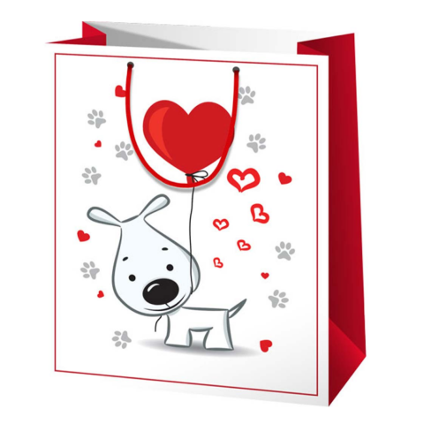 Szerelmes kutyus mintás normál méretű ajándéktáska 11x6x14cm-es
