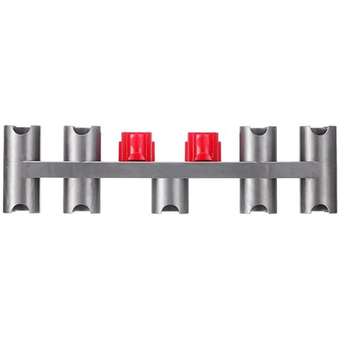 Tartó - Dyson V7, V8, V10 és V11 porszívókhoz, a porszívó és a tartozékok biztonságos tárolásához, szürke-piros szín