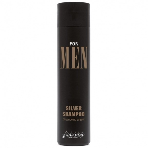 Carin For MEN Ezüst reflex sampon 250ml Silver Shampoo. Aktív, kék színpigmentjei semlegesítik a sárgás tónust az ősz hajban vagy szőkére festésnél. Szőke hajszínnél le kell öblíteni hajmosást követően, míg ősz hajnál 1-3 perc hatóidő után kell alap