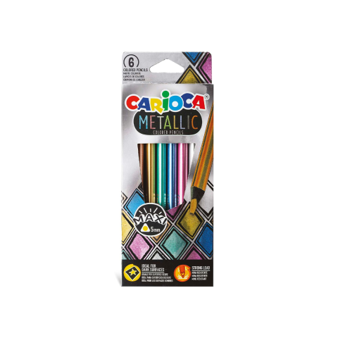 A Carioca termékcsalád részeként bemutatott metallic színes ceruza szett lenyűgöző választás az iskolások, rajzolók és kreatív szellemek számára. Ez a 6 darabos szett maxi méretben készült, így minden egyes ceruza hosszabb és tartósabb használatot tesz lehetővé. A ceruzák háromszög alakú kialakítása ergonomikus fogást biztosít, így kényel