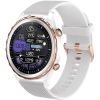 A modern, kültéri Carneo Queen HR+ fitnesz okosóra elegáns fehér színben, ezüstszínű rozsdamentes acél lünettával, kerek SUPER AMOLED színes kijelzővel rendelkezik, amelyet kemény ásványi kristály...