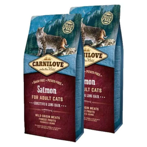 Teljes Carnilove Cat Adult Salmon Sensitive & Long Hair - Lazac Hússal 2x6kg termékleírás