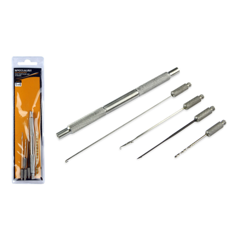 A nyélrészben csavaros menettel csatlakoztathatóak a különböző fejek. Egyszerű gyors használatot tesz lehetővé. A csomag tartalmaz csalofúrót, dippelő tűt és különböző hosszúságú fűzőtűk.