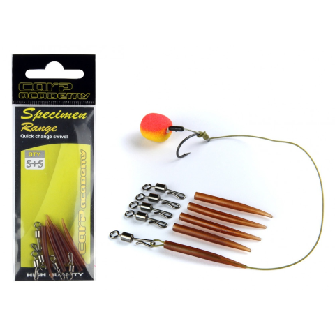 A gyorskapocs rövid szilikoncsővel gyors előkecserét tesz lehetővé újabb csomó kötése nélkül.Az előre felcsalizott előkéket időveszteség nélkül tudjuk felakasztani a forgón lévő kampóba.