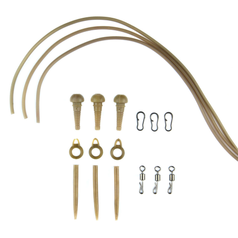 A csomag tartalmaz három hosszú gubancgátló csövet, ólomrögzítő fejet, gyorskapcsot és biztonsági kapcsot is. A végszerelékhez három forgókapcsot és hozzá tartozó gubancgátló csöveket. (A képen látható ólom, horog illusztráció!)
