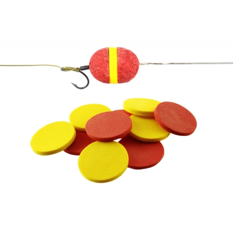 Két bojli közé helyezve a megfelelő mennyiségű lebegtető korongot,könnyen tudjuk szabályozni a csalik lebegését.