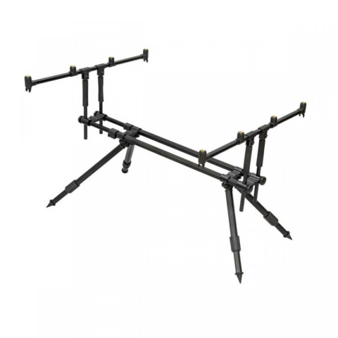 Exkluzív megjelenésű, prémium feketére porfestett alumínium rod pod, mely a környezeti viszonyokhoz igazodva kétféleképpen: a központban vagy a keresztmerevítő végein elhelyezett lábállással is használható. Négy kompletten felszerelt bojlis bot tárolására alkalmas. A teleszkópos lábaknak köszönhetően magassága szabályozható. Minden teleszkópos rész gyorsan oldható, masszív zárral lett ellátva, így gyorsan felállítható vagy szétszerelhető.