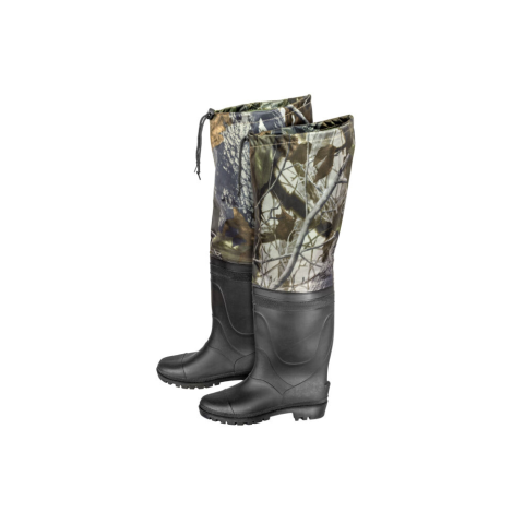 Az őszi és tavaszi nedves időben, de a nyári záporrok alkalmával is hasznos kiegészítő. Klasszikus fazonú, vízmentes gumicsizma, melyre a térd felett rögzíthető, vízhatlan rész került. A terepszínű rész puha anyagánál fogva kényelmes viselet, igény szerint le is hajtható. A talprész bordázott, így biztonságos közlekedést tesz lehetővé csúszós talajon is. Horgászathoz, vadászathoz, őszi gombakereséshez is remek választás.