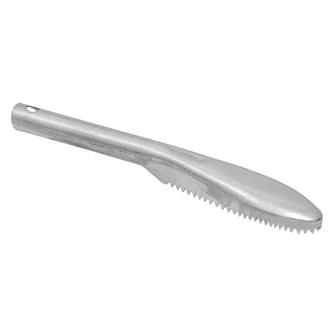 A halpucolás egyik legkörülményesebb mozzanata a pikkelyek eltávolítása. Ebben nyújt nagy segítséget ez a 22 centiméteres, speciálisan fogazott fejjel ellátott, könnyen tisztítható, rozsdamentes fémből készült halpucoló, mely a tóparti hétvégi házak és a halimádó konyhák hasznos kiegészítője.