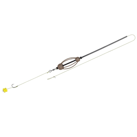 Terepszínű, gubancgátló csöves etetőkosárral, nagy szakítószilárdságú fonott zsinórral, gumikukoricával kibalanszírozott, extrahegyes minőségi horoggal ellátott készre szerelt végszerelék, mely a zsinórra akasztás után azonnal bevethető. A kosár alatt található forgóban a horogelőke tetszőlegesen cserélhető. A gumikukorica önmagában is használható, de aromatizálva és más csalikkal kombinálva tovább növelhető fogóssága. Olyan horgászoknak ajánljuk,