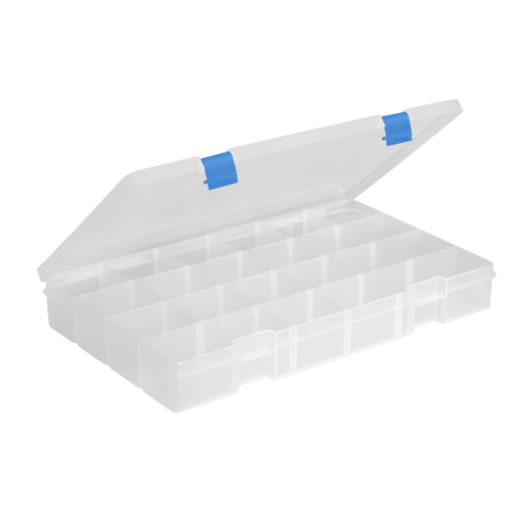 Pergető horgászoknak fejlesztett, klasszikus kialakítású pergető doboz. Anyaga twister és gumihal álló. Teljes egészében áttetsző, ezáltal tartalma a doboz kinyitása nélkül áttekinthető. A biztos záródást strapabíró csatok garantálják, melyek egy mozdulattal ki/be zárhatóak. Belső kialakítása a kivehető válaszfalaknak köszönhetően moduláris, sokrétűen varriálható, így minden műcsalinak és aprócikknek kialakítható a megfelelő méretű hely.