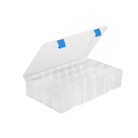 Pergető horgászoknak fejlesztett, klasszikus kialakítású pergető doboz. Anyaga twister és gumihal álló. Teljes egészében áttetsző, ezáltal tartalma a doboz kinyitása nélkül áttekinthető. A biztos záródást strapabíró csatok garantálják, melyek egy mozdulattal ki/be zárhatóak. Belső kialakítása a kivehető válaszfalaknak köszönhetően moduláris, sokrétűen varriálható, így minden műcsalinak és aprócikknek kialakítható a megfelelő méretű hely.