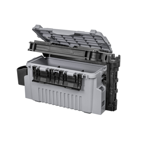 Minden elemében alaposan átgondolt, a felhasználó kényelmét szolgáló, modern megjelenésű horgászláda. Mérete 40x22x28 centiméter, így nagyobb menynyiségű felszerelés tárolására alkalmas. Míg a fedelében található, 4 centiméter mély, kivehető válaszfalakkal tetszőlegesen alakítható részében kényelmesen elférnek az apróbb kiegészítők, addig a fedél alatt nagy részben a darabosabb horgászfelszerelés kaphat helyet. Természetesen az alsó rész is igény s