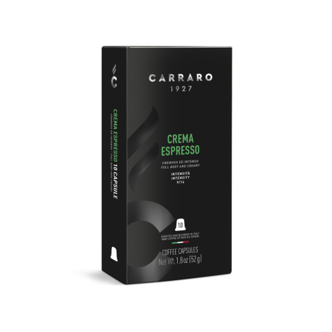 Carraro crema espresso premium kávékapszula nespresso kompatibilis 10 db A Gran Crema kapszula olyan keverék, amely megtestesíti a kávé klasszikus ízét, olyan testes és krémes, amelyről az olasz eszpresszó híres. Jellegzetes íze a nagyszerű, édes közép