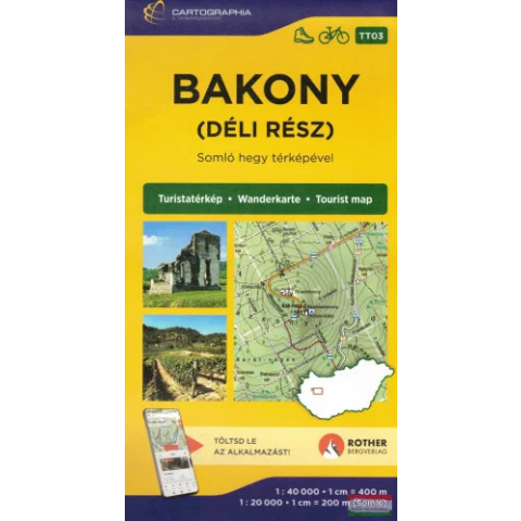 Cartographia turistatérképek, cartographia túrista térképek, Cartographia turistakalauzok, cartographia túrakalauzok. Az aktualizált, új kiadású Bakony (déli rész) turistatérkép 1:40000 méretarányban részletesen és naprakészen ábrázolja a látnivalókat, a