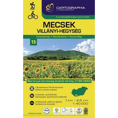 A Cartographia kiadó közkedvelt és közismert turistatérkép sorozata hazánk legfontosabb hegy- és dombvidékein vezet körbe és mutatja be e területek aktív turisztikai, elsősorban természetjáró lehetőségeit. Az aktualizált, új kiadású Mecsek, Villányi-hegység turistatérkép 1:40000 méretarányban részletesen és naprakészen ábrázolja a látnivalókat, a sokrétű szabadidős lehetőségeket, ezáltal nélkülözhetetlen társa az aktív turisztikai formák kedvelő