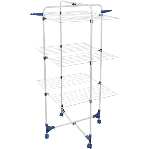 Ruhaszárító - kültéri és beltéri, álló, emeletes, szabadon álló, 3 emeletes, 42 zsinór/rúd, teljes szárítási hossz 30 m, max. terhelhetőség 15 kg, kerekek a csomag része, anyaga fém, mérete kinyitva 138 × 70 × 65 cm (Ma×Sz×Mé), mérete összehajtva 20 × 70,5 × 13,2 cm (Ma×Sz×Mé), tömege 4 kg Minél több természetes eljárást szeretnél a háztartásban megvalósítani? Kiváló megoldás lehet a számodra a kedvelt hagyományos ruhaszárító az ismert Casa SI