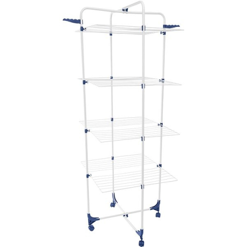 Ruhaszárító - kültéri és beltéri, álló, emeletes, szabadon álló, 4 emeletes, 56 zsinór/rúd, teljes szárítási hossz 40 m, max. terhelhetőség 15 kg, kerekek a csomag része, anyaga fém, mérete kinyitva 172 × 70 × 65 cm (Ma×Sz×Mé), mérete összehajtva 20 × 71,5 × 16 cm (Ma×Sz×Mé), tömege 4,7 kg Szeretnéd természetes módon szárítani a ruhákat? Kiváló megoldás lehet a számodra a kedvelt hagyományos ruhaszárító az elismert Casa SI gyártótól, amely hossz