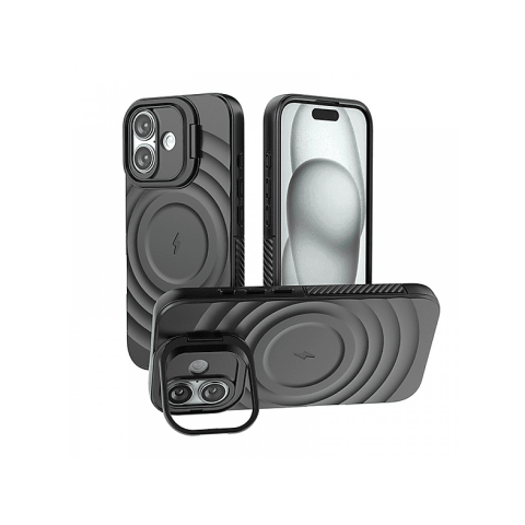 1 kép CASE AND PRO iPhone 16 mágneses tok fém kamerakitámasztóval, fekete (MAGSCK-IPH16-BK)