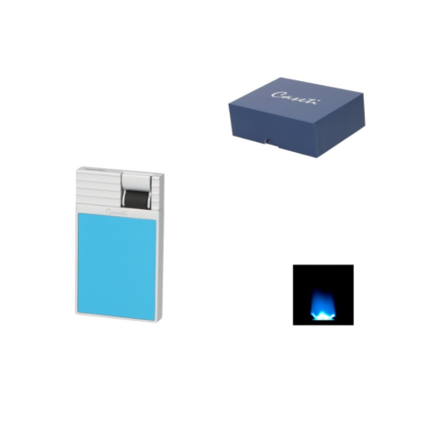 A türkiz-króm színű Caseti Flat Flame szúrólángos szivaröngyújtó modern, elegáns és letisztult megjelenésével tökéletes kiegészítő minden alkalomra. Az öngyújtót a türkiz előlap és az azt körülölelő króm színű fémház teszi különlegesen vonzóvá. Az elején látható Caseti logó tovább erősíti az öngyújtó prémium hatását.A speciális lapos szúróláng technológia széles, stabil, kék színű lángot hoz létre, amely különösen alkalmas a szivar