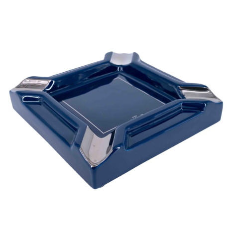 Porcelánból készült sötétkék színű Casetti márkájú szivar hamutál, 4 szivarnak elegendő hellyel. A hamuzó úgy van kialakítva, hogy a szivar vízszintesen tudjon piheni rajta, ezzel egy hosszú, egyenletes égést biztosítva számára. Elegáns megjelenésű az ezüst színű szivarbölcsőnek köszönhetően. A hamuzó belsejét egy szintén ezüst színű dekoráció, rajta Casetti Paris felirat díszíti.Méretek: 20x20x4cm